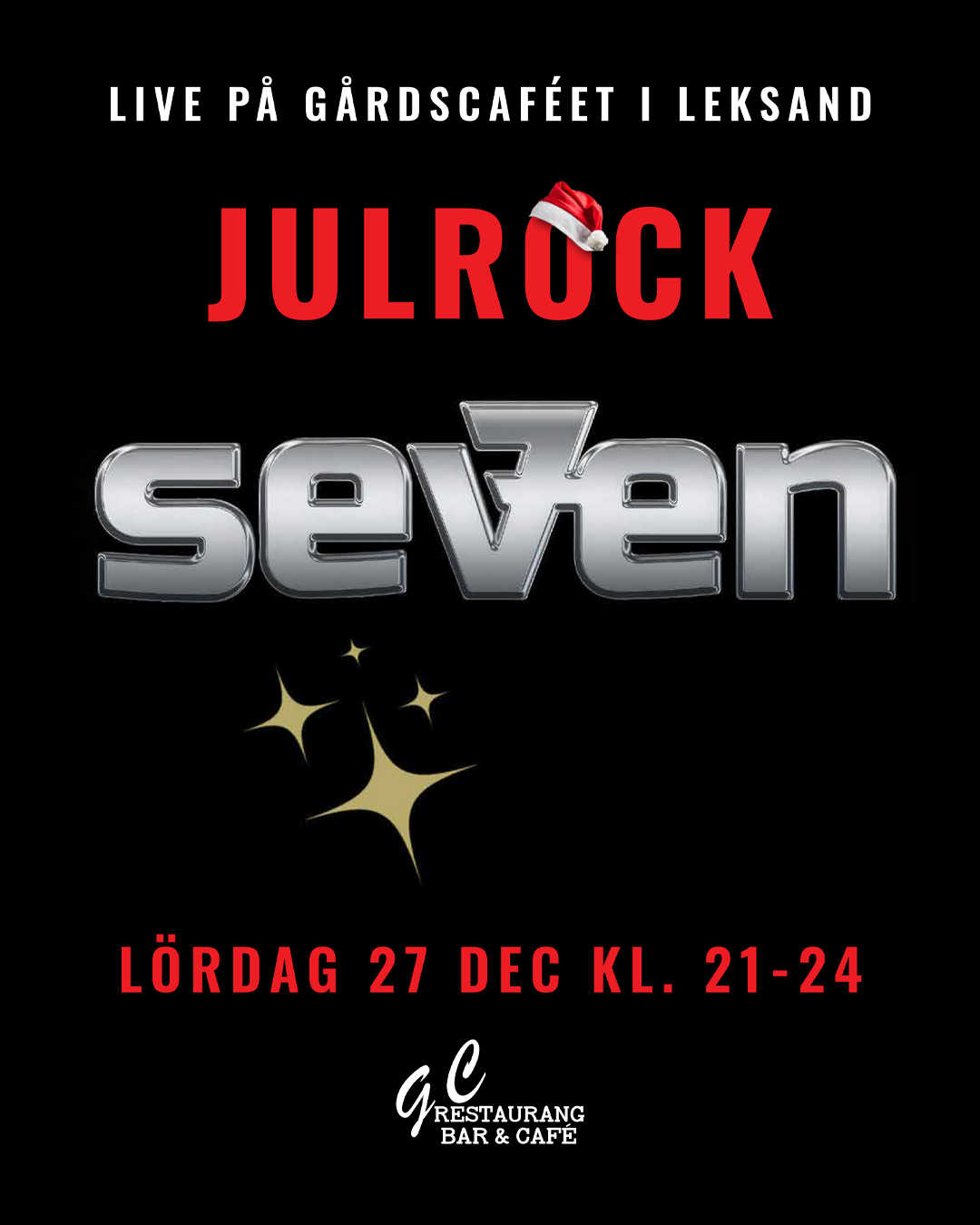Välkommen till en svängig kväll med Sev7en • På scen ca 21.00 • Fri entré